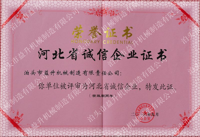 泊頭益升機(jī)械制造公司榮譽(yù)證書